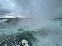 Sia sulla sponda americana che su quella canadese del Niagara ci sono terrazzamenti e percorsi pedonali che si affacciano su quell'immensa muraglia d'acqua e noi, quel giorno, li percorrenmo praticamente tutti, camminando fino a tarda sera. Il momento più emozionante però l'abbiamo vissuto a bordo di uno dei battelli che portano i turisti fino quasi al centro del ferro di cavallo, là dove l'acqua precipita nel vuoto e si schianta sulle rocce del letto del fiume, sprigionando un'incontenibile energia.
