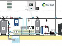 3) Osmosi inversa: in Elemental Water Source l’acqua salata viene filtrata attraverso membrane speciali che separano il sale e le impurità, lasciando passare soltanto acqua dolce; è un’osmosi inversa fuori rete, alimentata a energia solare e senza batterie e funzionante per 24 ore al giorno; l’accumulo di energia avviene, dunque, non tramite una batteria, ma attraverso il riempimento con acqua di mare di un serbatoio su una collina; attraverso la forza naturale della gravità, il processo di osmosi inversa riceve continuamente l’alimentazione richiesta: acqua di mare pressurizzata
