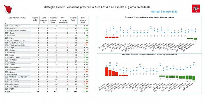 I posti letto nei reparti Covid restano stabili, tra nuove uscite ed ingressi. Aumentano nuovamente i positivi. Oggi 295 casi solo a Firenze