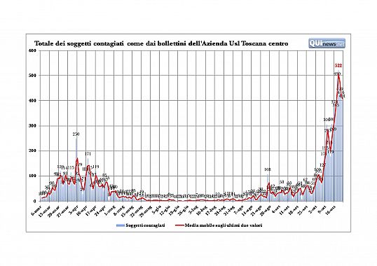 Sono 401 i nuovi casi positivi registrati nei territori dell’Asl Toscana Centro dove risultano 4 decessi nelle ultime ore.