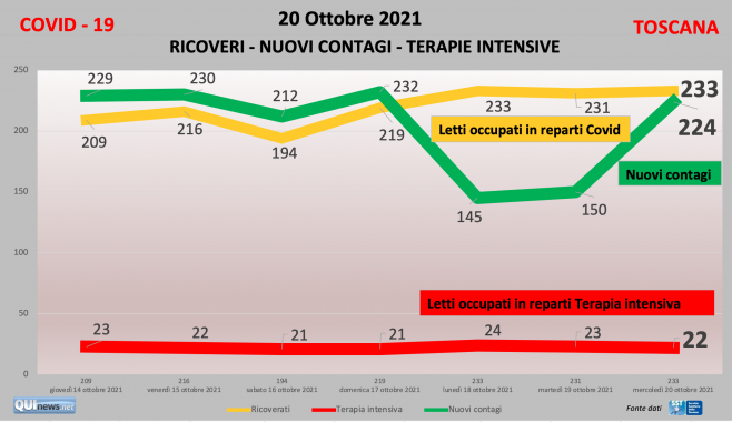 La situazione in Toscana con i dati forniti dalla Regione e dal Ministero della salute.