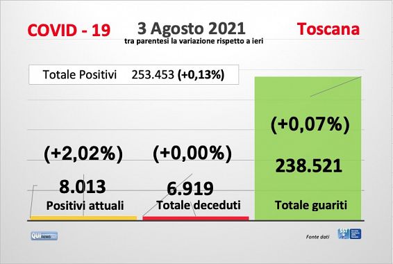 La situazione in Toscana con i dati forniti dalla Regione e dal Ministero della salute.